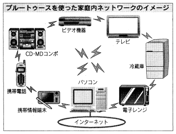 「デジタル機器が役割分担しブルートゥースで情報をやり取りすれば、機器単独では考えられない高度な機能を持った家庭内コードレスネットワークができる」という。 画像や音声だけでなく個人認証データを簡単に送受信できることも、活用の幅を広げる。